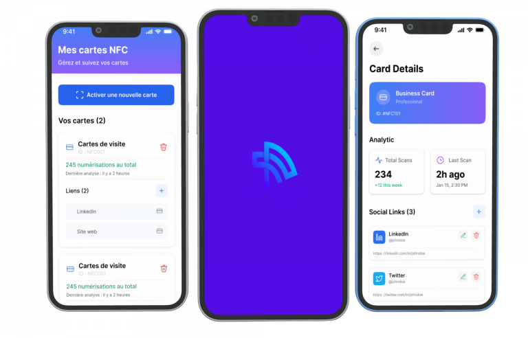 Renseignez vos liens, profils sociaux, avis et informations. Mettez tout à jour en quelques secondes, sans carte physique.